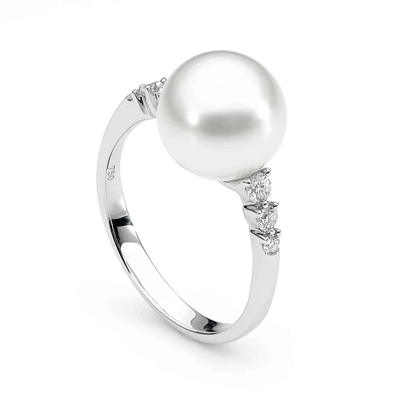 This beautifully handcrafted ring features a radiant Australian South Sea pearl set in 18ct white gold, with three sparkling diamonds on either side. The elegant design enhances the natural beauty of the pearl while adding a refined touch of brilliance from the diamonds.